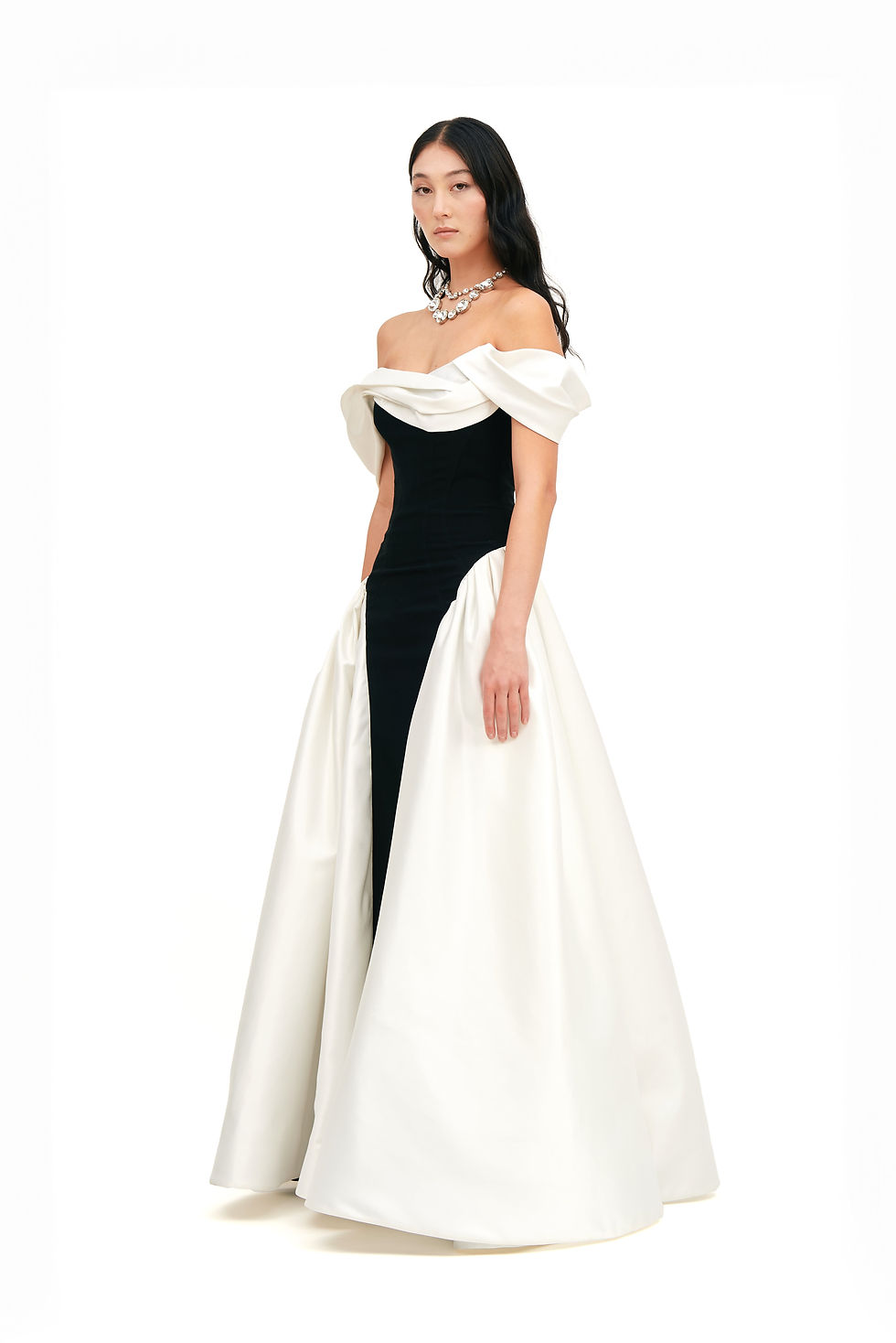 MONOCHROME GOWN WITH ASYMMETRIC DRAPED SHOULDER